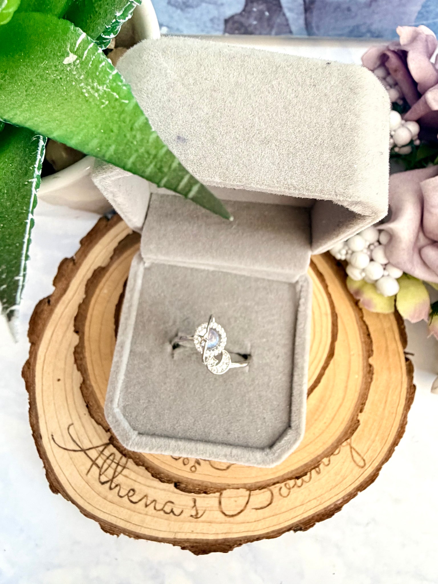 This beautifully designed celestial spinner ring features a detailed ringed planet that spins smoothly, offering a subtle and satisfying fidget motion. Accompanied by a sparkly moon and star that meet at the centre as part of the adjustable band, this ring blends playful movement with cosmic elegance.