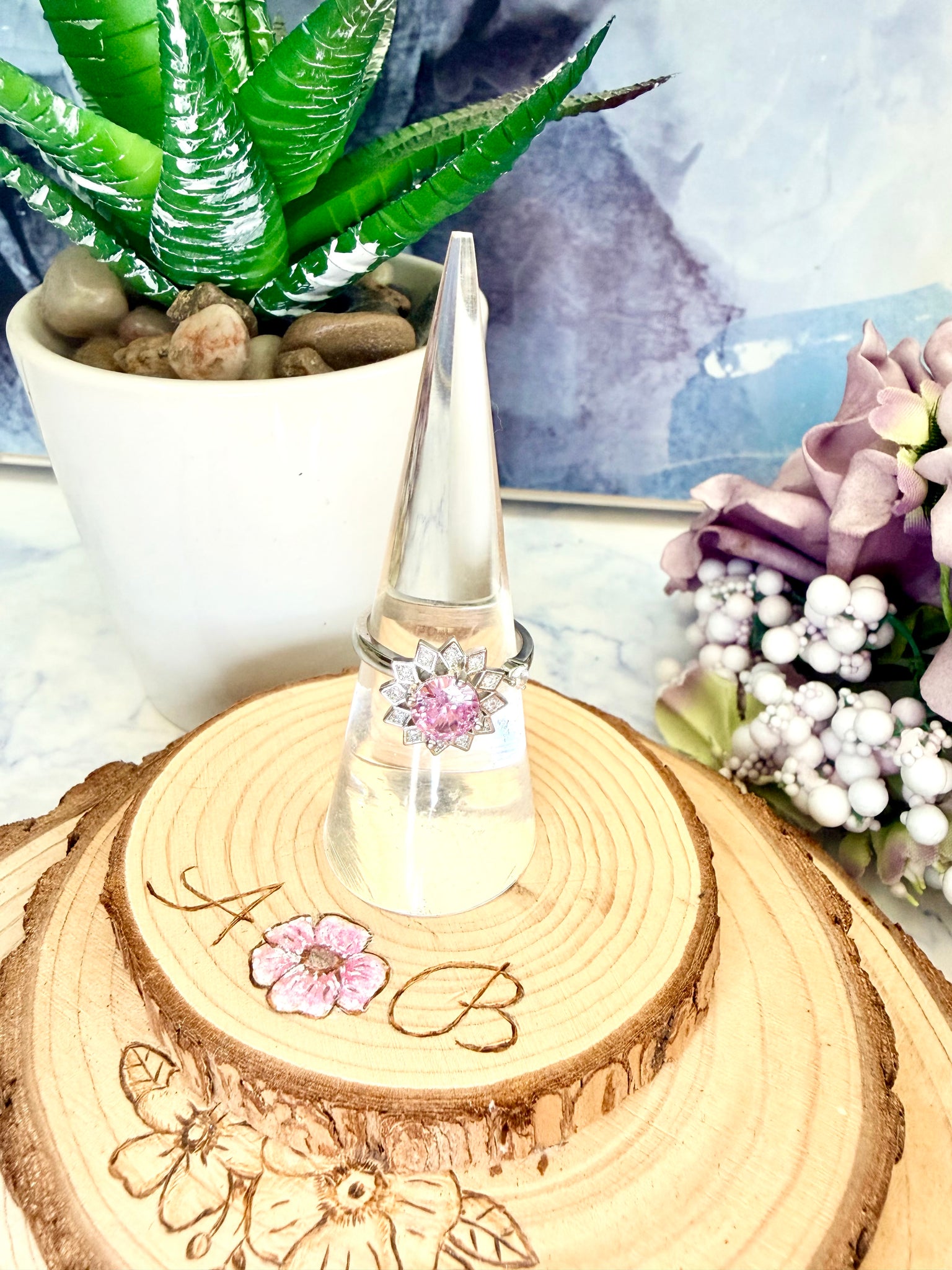 Discover the beauty and serenity of the SERAPHINA Adjustable Fidget Spinner Ring. Adorned with a stunning large stone surrounded by charming petal-style accents, this ring isn't just a fashionable accessory—it offers a soothing sensory experience. Spin your way to calm and elegance, available in enchanting pink or clear!